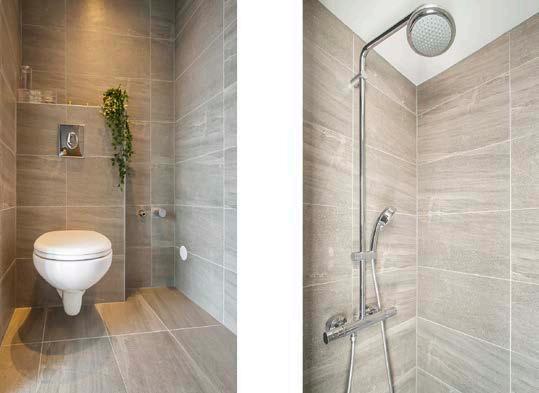 De badkamer op de tweede verdieping heeft een moderne uitstraling en is voorzien van een derde toilet en een inloopdouche.