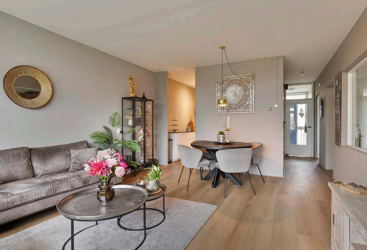 De woonkamer is royaal en biedt voldoende ruimte voor een gezellige zithoek en een eettafel waar je uitgebreid kunt dineren met vrienden en familie.