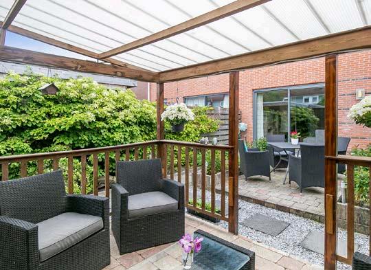Daarnaast is het geheel aangelegd met verschillende materialen, waaronder bestrating, grind en houten schuttingen. Dit maakt de tuin niet alleen praktisch, maar ook stijlvol. Bovendien is er een overkapping aanwezig, waardoor je ook tijdens een regenachtige dag volop kunt genieten van de buitenlucht.