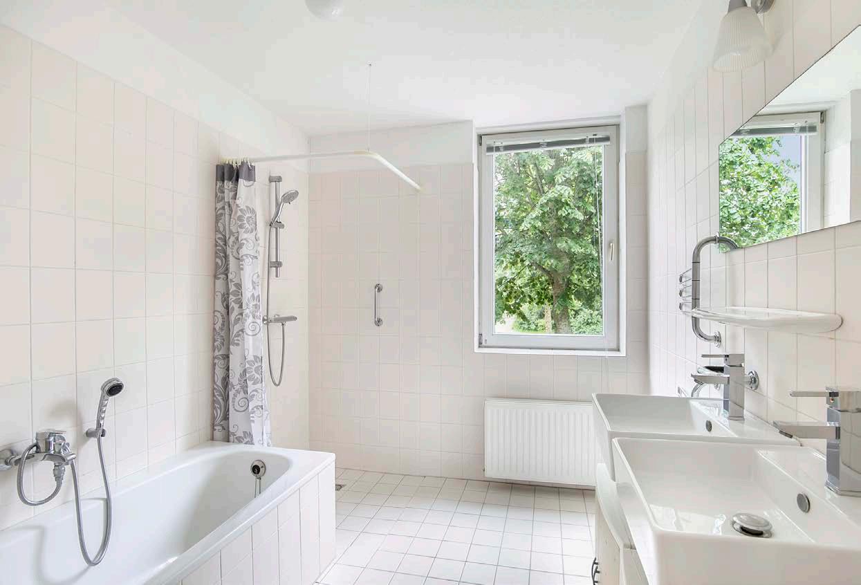 De badkamer is voorzien van alles wat je nodig hebt. Het eerste wat je zal opvallen aan de badkamer is het raam. Dit zorgt niet alleen voor natuurlijk daglicht, maar biedt ook een frisse luchtstroom. Naast het ligbad en de douche is de badkamer uitgerust met een dubbele wastafel.