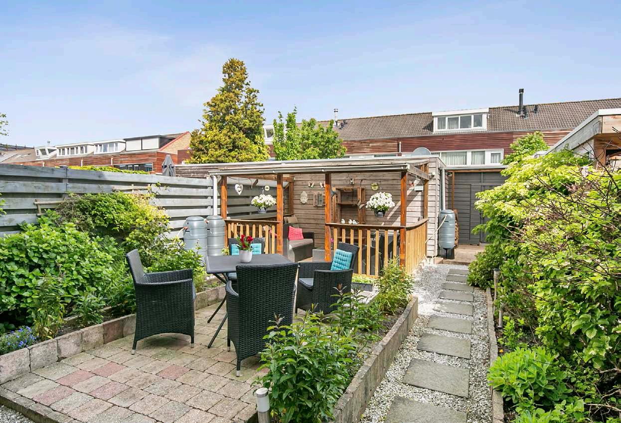 De achtertuin is gelegen op het noordwesten. Dit zorgt ervoor dat je kunt genieten van de middagen avondzon. Ideaal om lekker buiten te zitten en te ontspannen na een lange werkdag.