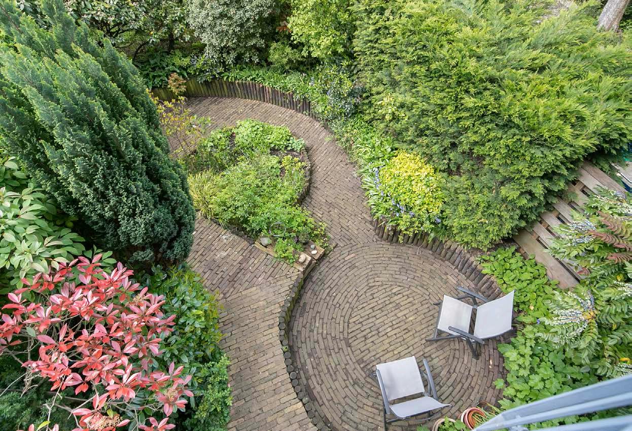 De woning beschikt over een prachtige tuin die op het westen is gelegen. De tuin is verzorgd aangelegd met een combinatie van stenen bestrating en groen. Dit zorgt voor een mooie balans tussen een rustige uitstraling en een natuurlijke look.