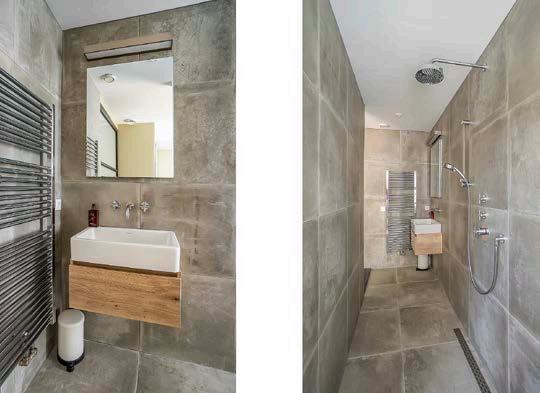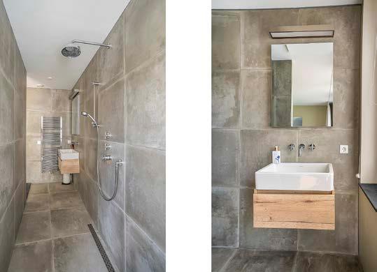 Direct aan de slaapkamer bevindt zich de vernieuwde badkamer, welke is ingericht met een inloopdouche, twee wastafelmeubels met spiegel en een handdoekradiator. Eveneens is hier gebruik gemaakt van neutrale tinten.