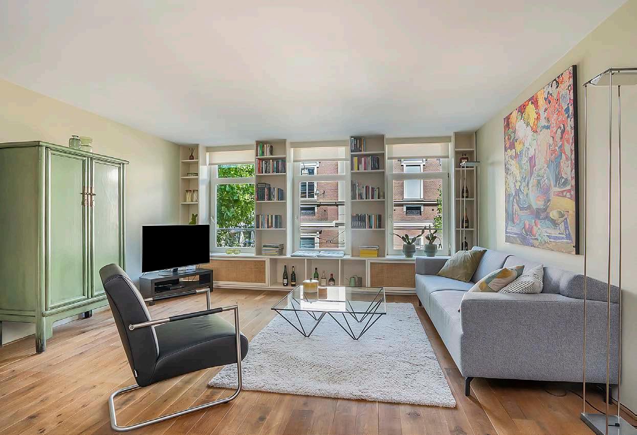 Laat je in de woonkamer verrassen door de charme en stijl die het appartement te bieden heeft. Het gehele appartement is voorzien van een fraaie eikenhouten vloer en strakke wanden in zachte kleuren. De drie hoge ramen aan de voorzijde zorgen voor prettige lichtinval en bieden prachtig uitzicht over de woonomgeving, waaronder Artis aan de overzijde van de straat.