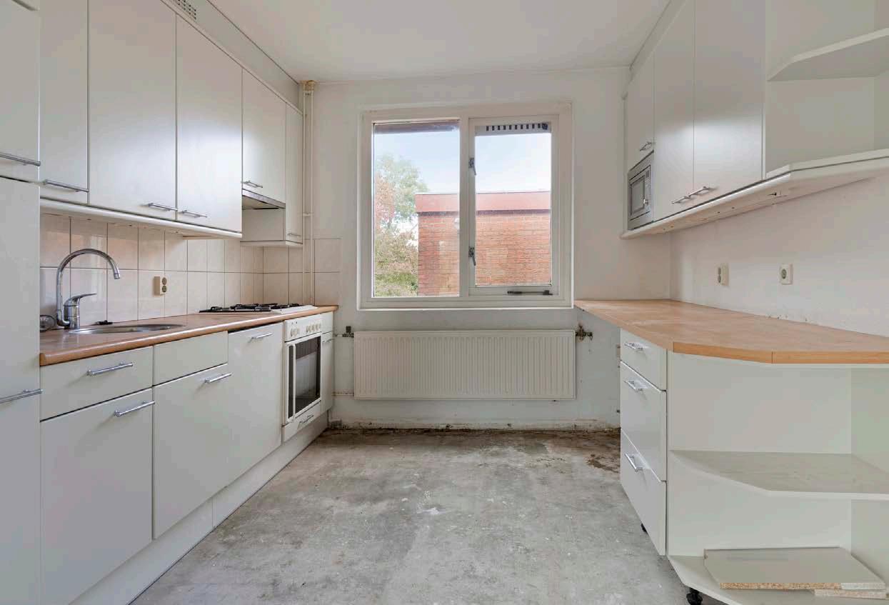 De open keuken aan de voorzijde is toe aan een update — en dat is juist de charme! Hier kun je jouw droomkeuken realiseren. Of je nu kiest voor een modern kookeiland, een landelijke stijl of een strakke, eigentijdse afwerking: de ruimte biedt volop mogelijkheden om het helemaal naar eigen smaak in te richten.