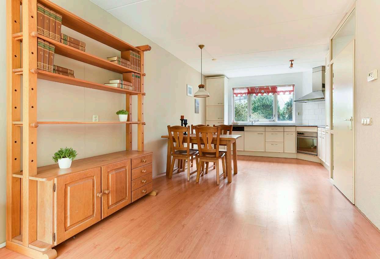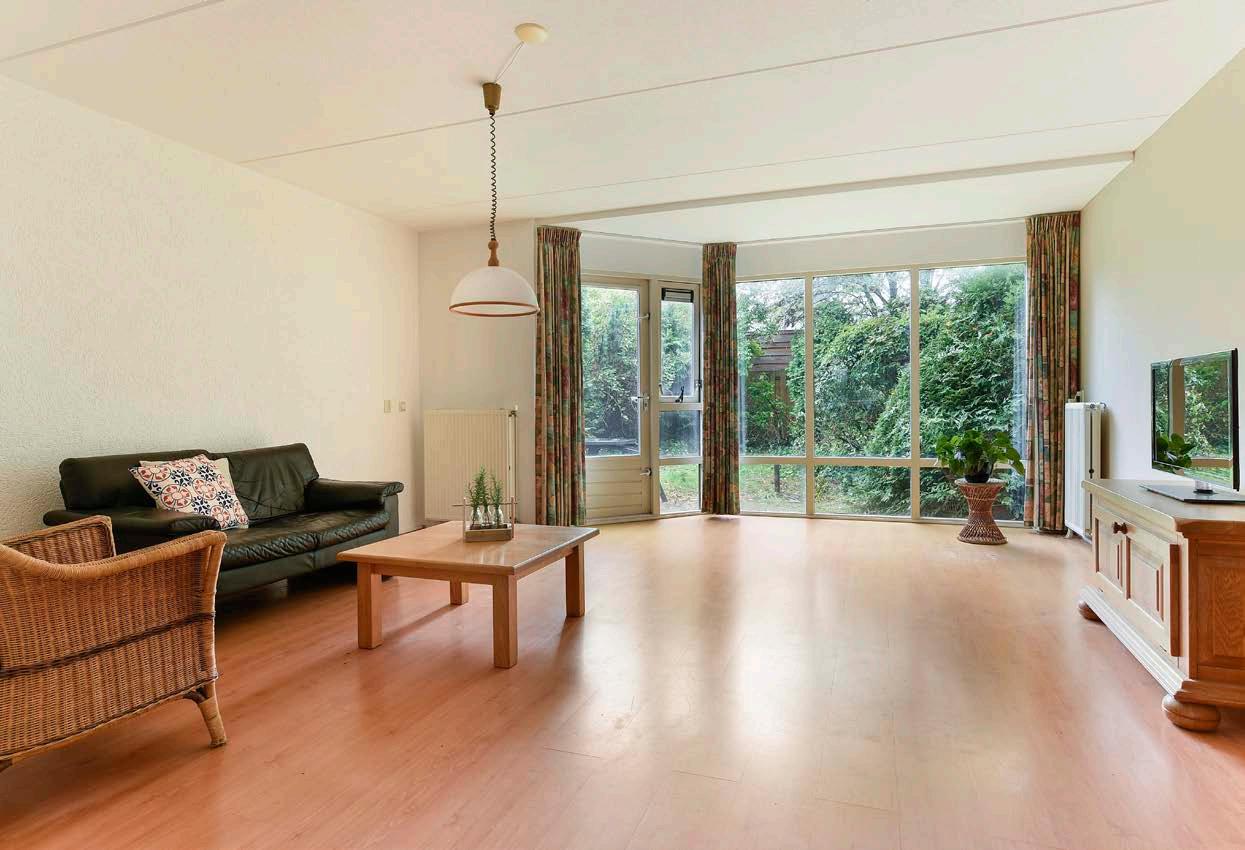 De woonkamer tovert direct een glimlach op je gezicht -- wat een heerlijke lichte ruimte! Aan de achterzijde is de woning uitgebouwd en voorzien van hoge ramen met zicht op de tuin. Het geheel is verzorgd afgewerkt met een laminaatvloer, stuc werk op de wanden en spuitwerk op het plafond.