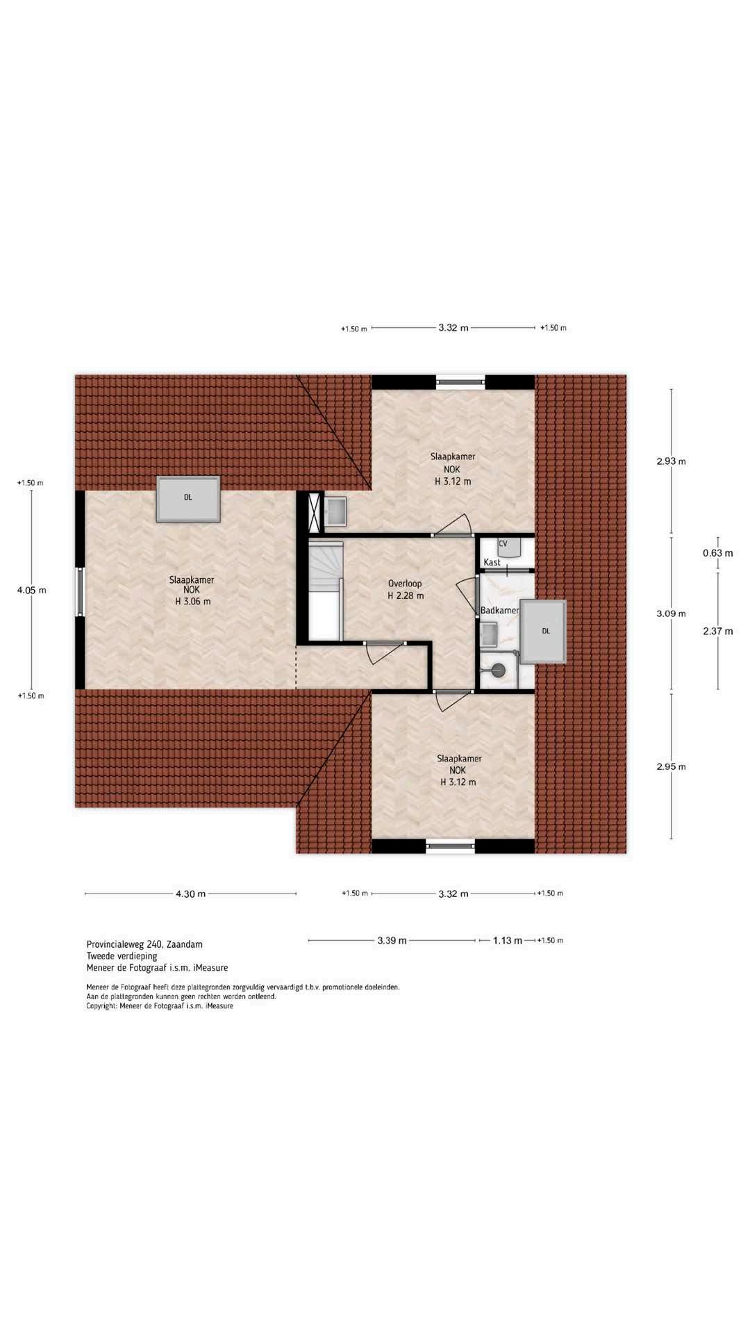 De 2e verdieping heeft ook indrukkend veel ruimte met 3 (slaap)kamers en een badkamer. Het daklicht boven de trap geeft een fantastische lichtinval.