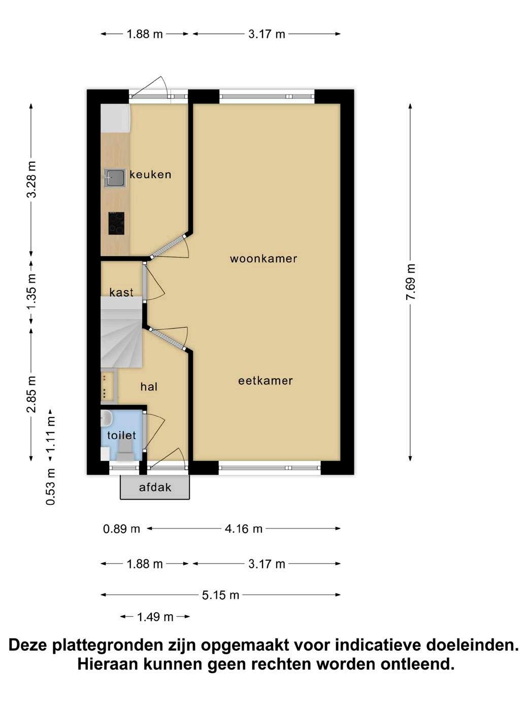 Je komt de woning binnen via de hal met de meterkast en toegang tot het separaat toilet met een fonteintje, de trapopgang naar boven en de woonkamer. De doorzon woonkamer zorgt voor een aangename hoeveelheid lichtinval die zowel aan de voor- als achterzijde naar binnen komt. Zo zul je hier altijd prettig op de bank of aan tafel zitten. De trapkast met daarin de stadsverwarming levert handige opbergruimte op.