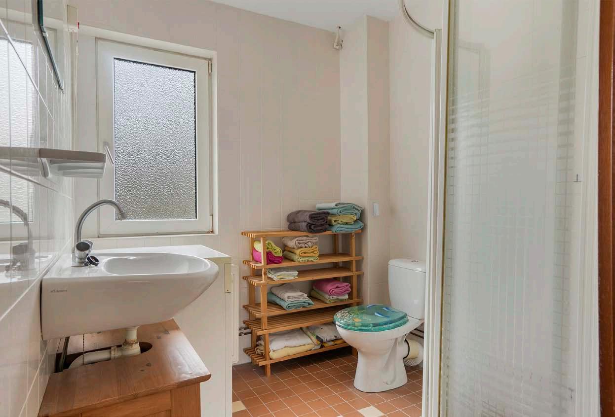 De praktische badkamer is voorzien van een douchecabine, wastafel en toilet. Zo kun jij iedere dag weer een frisse start maken.