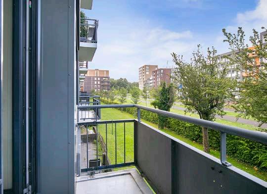 Het zuidelijk gelegen hoofdbalkon laat de zon binnenstromen, terwijl kunststof en aluminium kozijnen met isolatieglas zorgen voor een aangename en energiezuinige ambiance. Praktisch gemak wordt verzekerd door de eigen fietsenberging op de begane grond, terwijl het energielabel C duurzaamheid en efficiëntie onderstreept.