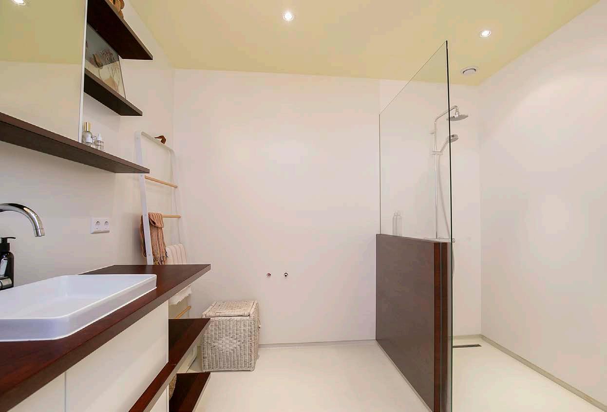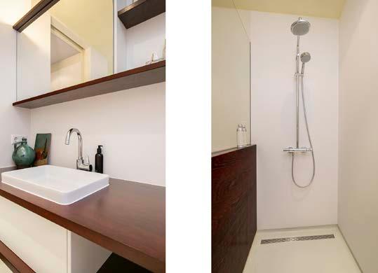 Vanuit de handige inloopkast krijg je toegang tot de badkamer. De nette badkamer is praktisch ingedeeld en uitgerust met een handgemaakt wastafelmeubel, inloopdouche en de aansluiting om eventueel een bad te plaatsen. Het separate toilet en extra bergruimte zijn in de hal te vinden. Vanuit de slaapkamer krijg je tevens toegang tot het balkon.