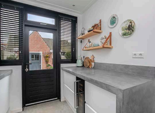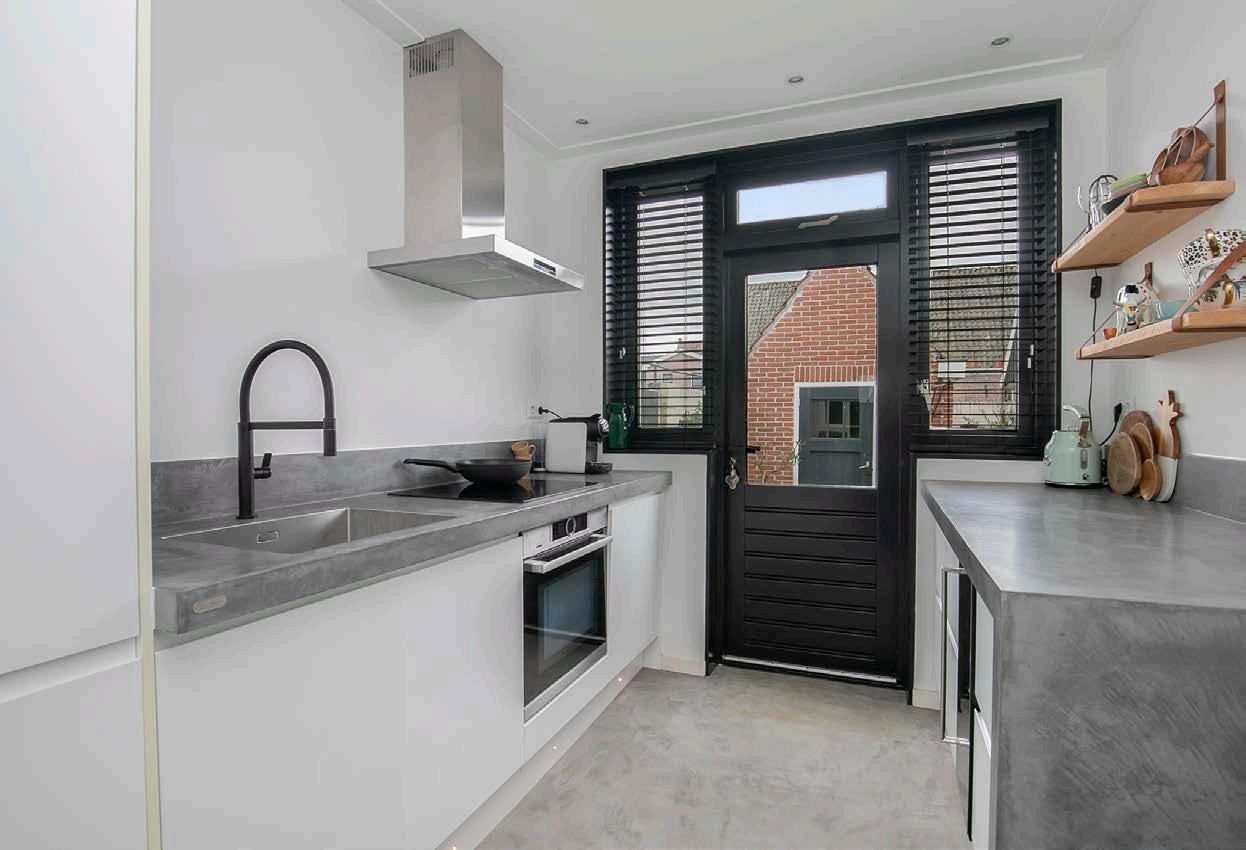 De luxe keuken is voorzien van alle moderne gemakken en biedt een fantastische plek om te koken en te bakken. Het keukenblok is geplaatst in een dubbele wandopstelling en er is gekozen voor een tijdloos design met witte keukenfronten in combinatie met een grijs betonlook werkblad.