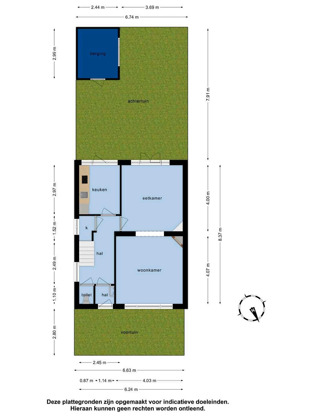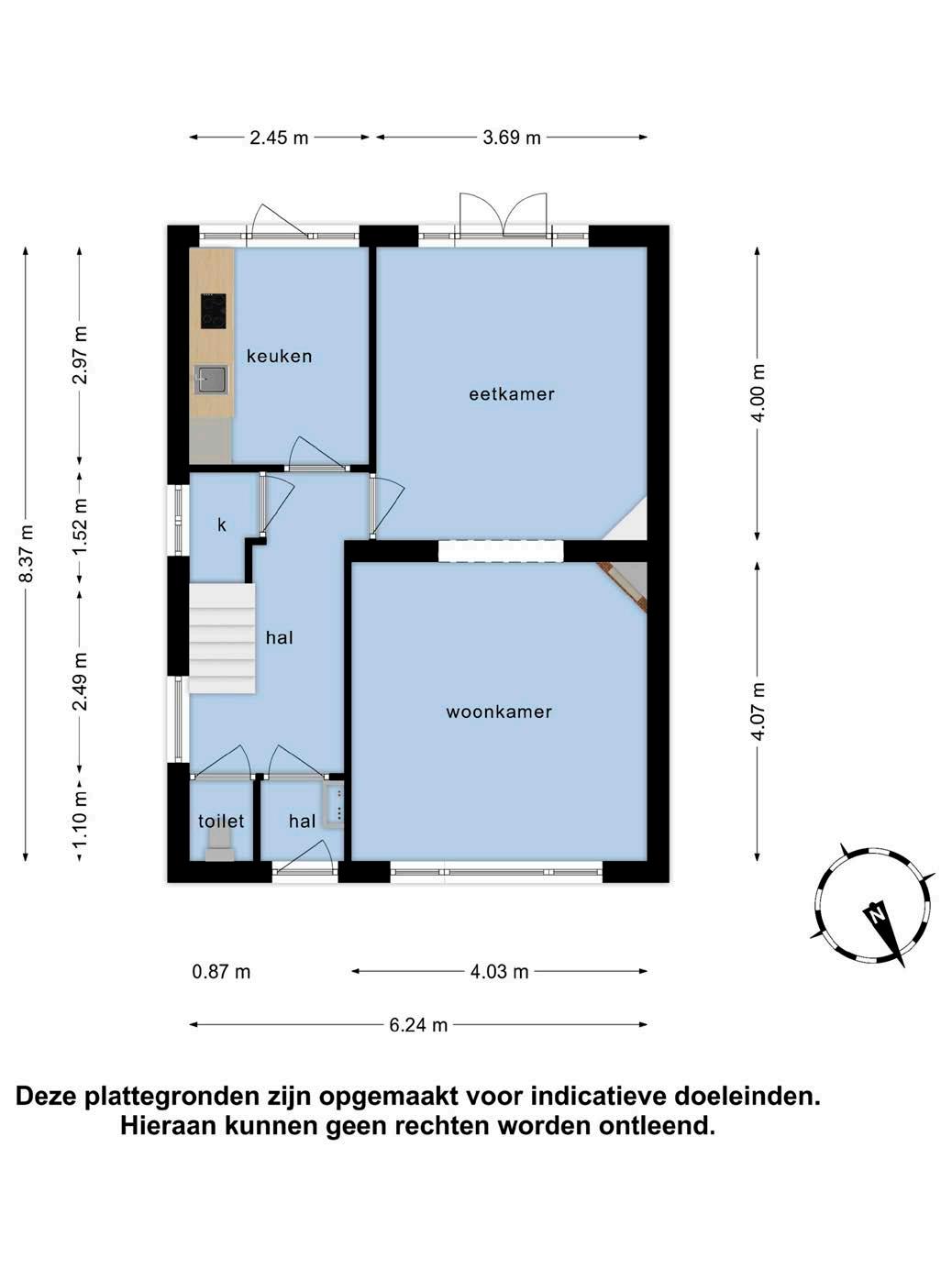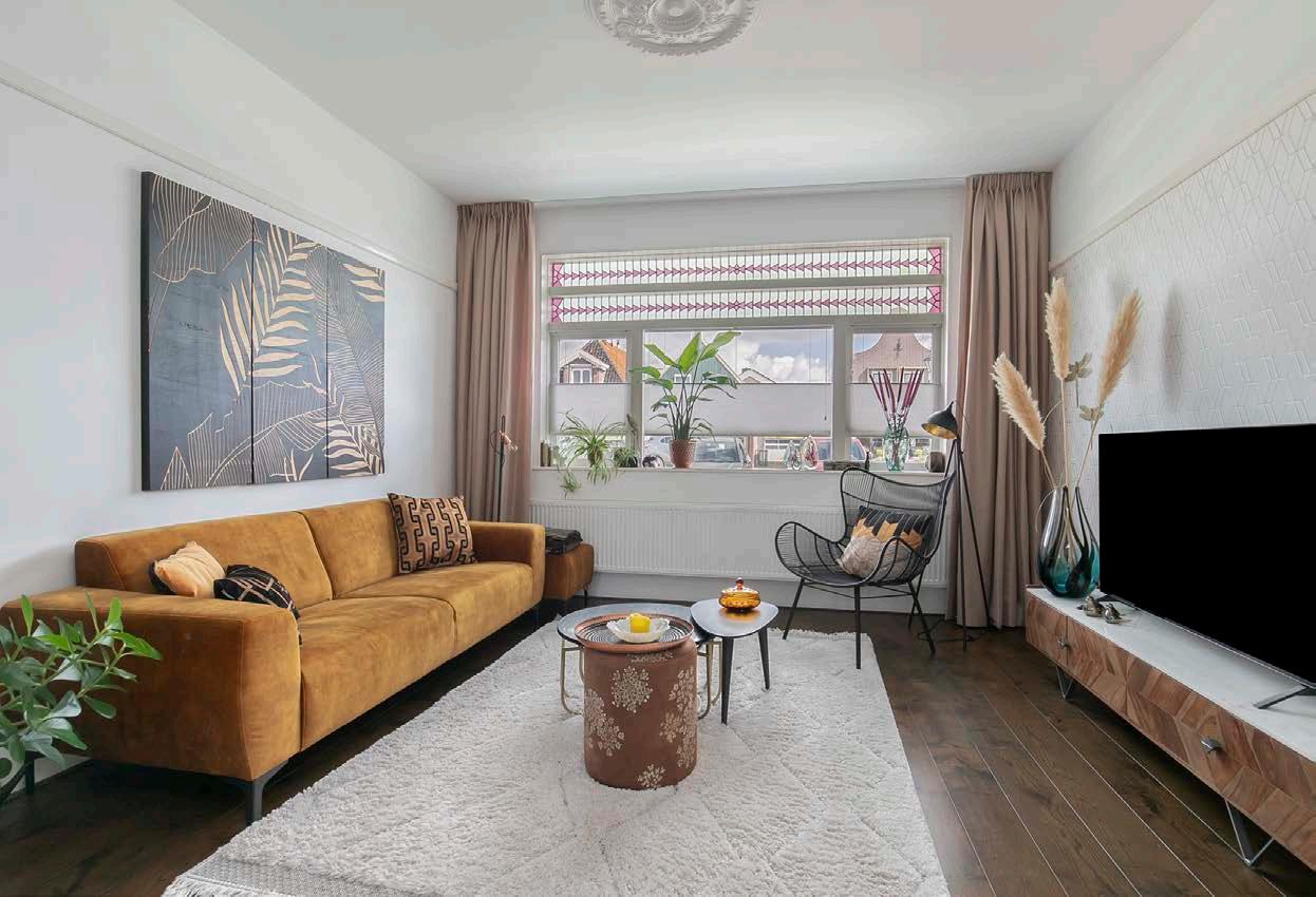 Je komt binnen in een voorportaal met de meterkast, waarnaar je doorloopt naar de verzorgde hal. Hier proef je direct de algehele sfeer van de woning dankzij de mooie vloer, paneeldeuren en de trap met een plateau naar de eerste verdieping. Daarnaast bereik je vanuit de hal ook de toiletruimte, trapkast, keuken en de woonkamer.
