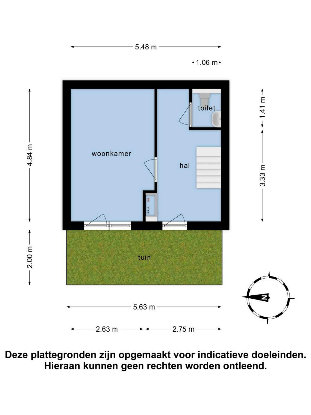 Op de begane grond vind je een ruime hal, een toilet en een slaap- of werkkamer. Handig voor als je thuis moet werken of logees hebt.