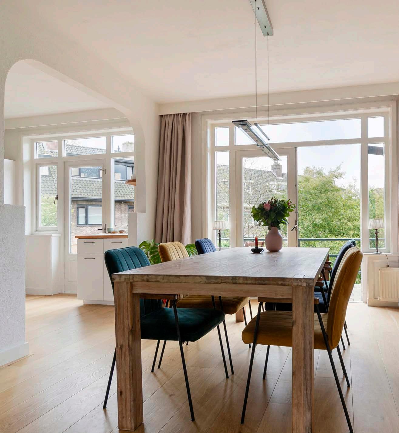 Toen wij op zoek gingen naar een nieuwe woning, was een betere bereikbaarheid richting Amsterdam een belangrijke factor. Bij de bezichtiging van dit huis werden we meteen verliefd. De praktische indeling, de charmante jaren ‘30 elementen, de overvloedige lichtinval, de warme sfeer in huis en de ligging tegen het centrum van Haarlem gaven ons meteen het gevoel van thuiskomen.
