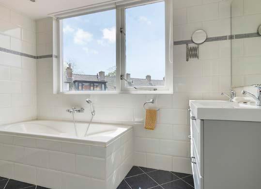 Op de tweede verdieping bevinden zich twee royale slaapkamers. Aan de achterzijde van de woning vind je de nette badkamer, voorzien van een dubbel wastafelmeubel, een ligbad, douche en toilet. De praktische indeling zorgt ervoor dat je hier alles hebt wat je nodig hebt voor je dagelijkse routine. Bovendien is er een aparte ruimte met witgoedaansluiting, bereikbaar vanaf de overloop.