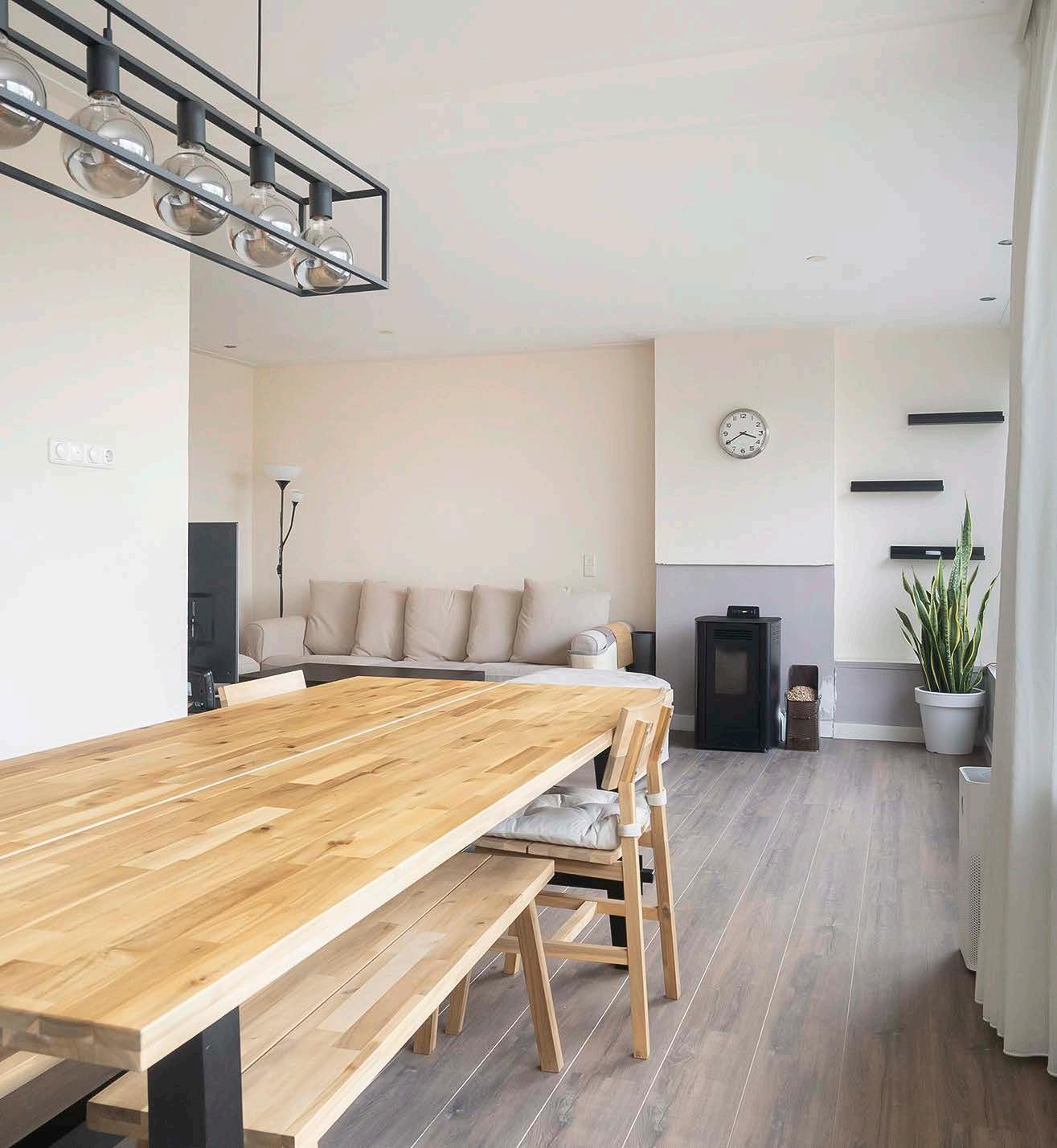 De woonkamer, een royale 33 vierkante meter, is het kloppend hart van het huis. Hier kun je met gemak een grote eettafel plaatsen voor gezellige etentjes of een zachte hoekbank voor die luie zondagmiddagen.