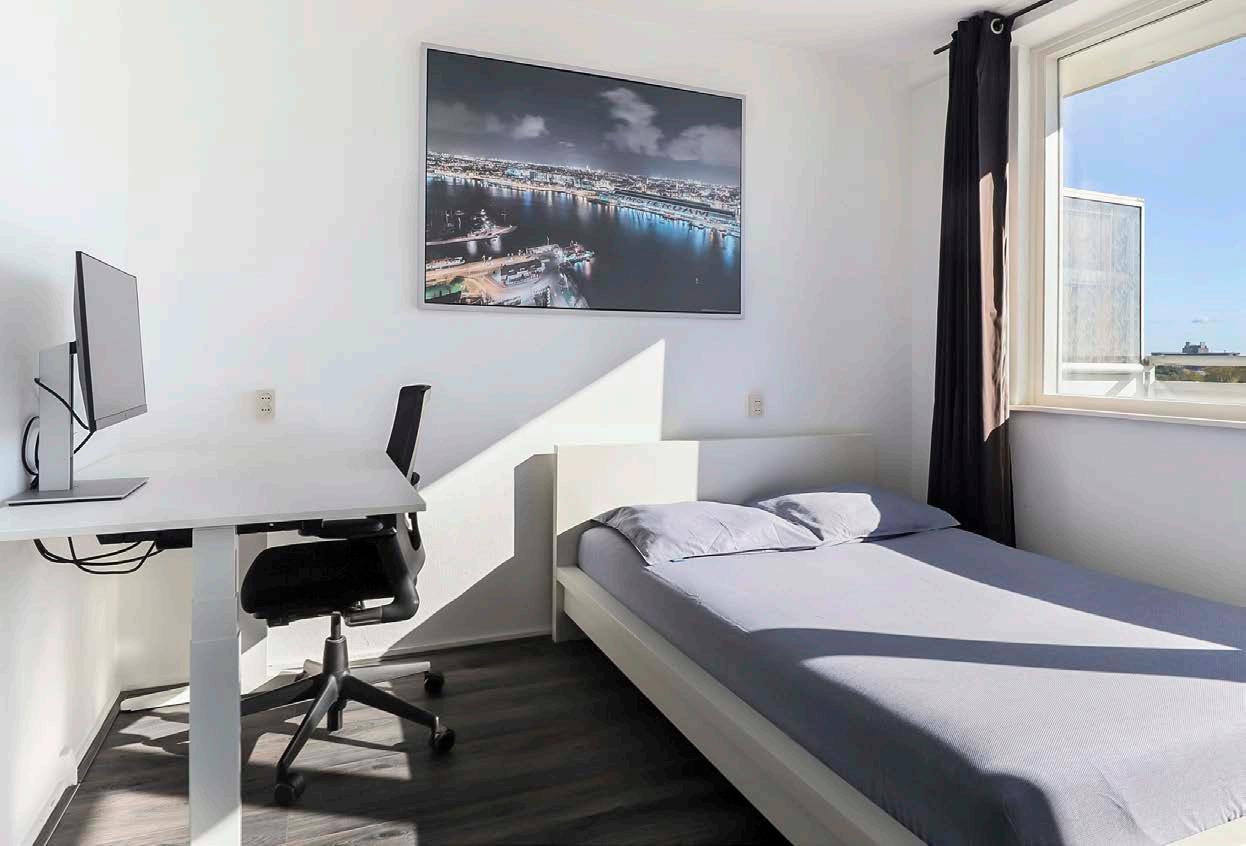 Ook aan de voorzijde van het appartement bevindt zich één slaapkamer met uitzicht over de Sloterplas.