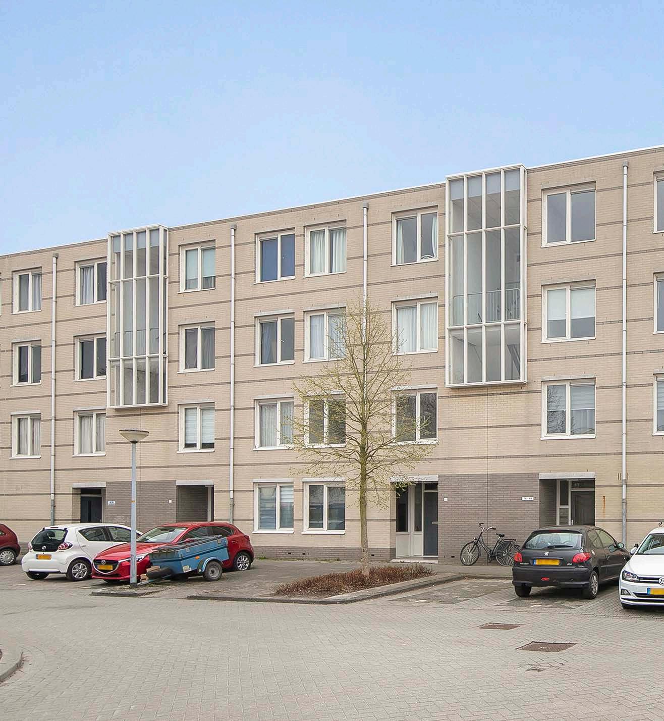 Eenmaal op de eerste verdieping betreed je het appartement op nummer 78. Vanuit de hal kom je in de woonkamer, twee slaapkamers, badkamer, toiletruimte, meterkast en een technische ruimte met de cv-opstelling.
