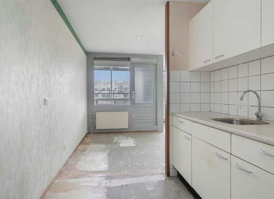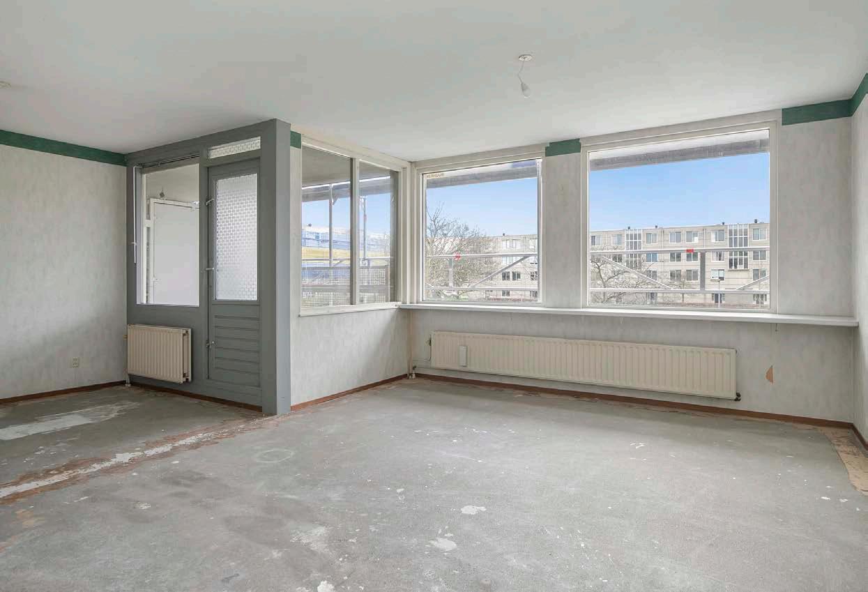 Wanneer jij de woonkamer binnenstapt zie jij direct de mogelijkheden! De kale betonvloer zie jij graag veranderen in bijvoorbeeld een mooie houten vloer. En de wanden kunnen ook wel een lekkere frisse kleurtint gebruiken. Het daglicht valt aangenaam naar binnen door de vele grote ramen en geven leuk zicht op de woonomgeving.