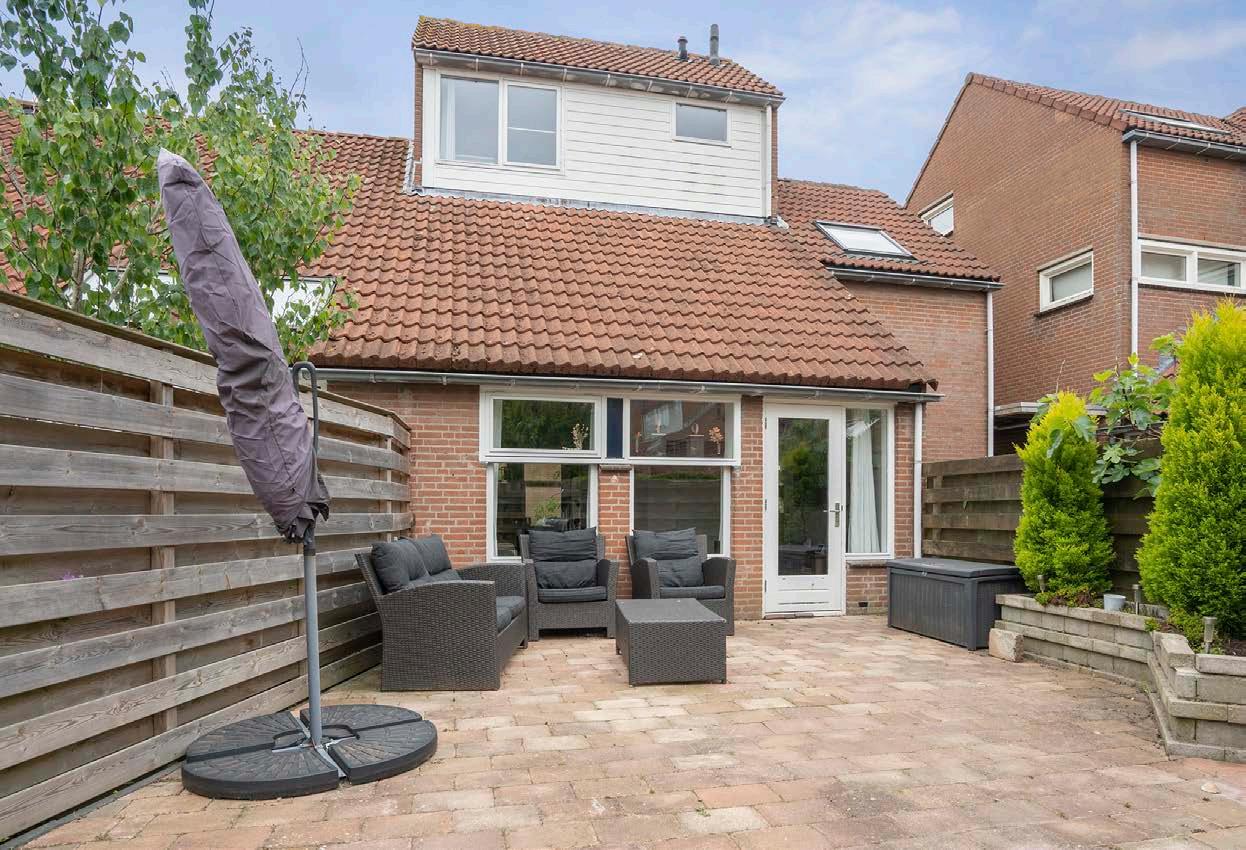 Achter het huis ligt een keurig aangelegde tuin op het westen. Dé perfecte plek om te genieten van de zon en het mooie weer. Dankzij de onderhoudsvriendelijke inrichting hoef je niet veel tijd te besteden aan het onderhouden van de tuin en via de achterom kun je gemakkelijk in en uit lopen.