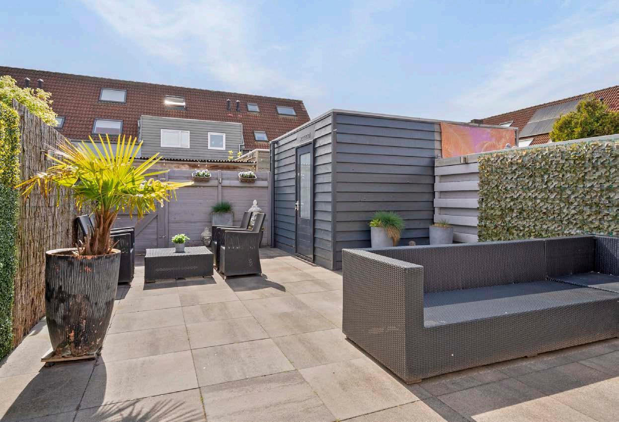 De tuin, gelegen op het zuidwesten, is een zonovergoten paradijs waar je van vroeg in de ochtend tot laat in de avond kunt genieten van het buitenleven. Of je nu houdt van tuinieren, zonnebaden of gezellig buiten eten met vrienden en familie, deze tuin biedt het allemaal. De recentelijk opnieuw bestrate ruimte is onderhoudsvriendelijk en nodigt uit tot ontspanning en plezier.