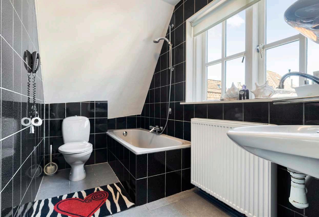 De badkamer is praktisch ingericht, met een ligbad waarin je heerlijk kunt ontspannen, een tweede toilet en een wastafel. Het raam in de badkamer zorgt voor prettig daglicht en goede ventilatie.