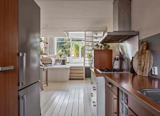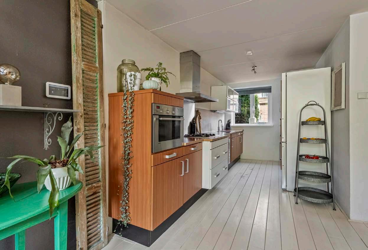 Op begane grond niveau aan de voorzijde bevindt zich de ruime keuken, uitgerust met diverse apparatuur, waar je gemakkelijk je favoriete gerechten kunt bereiden.