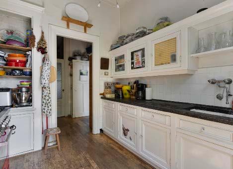Aangrenzend aan de woonkamer is de eetkamer gesitueerd. Beide ruimtes zijn voorzien van hoge plafonds en grote ramen. Hier kun je ontspannen met je favoriete boek of genieten van gezellige avonden met vrienden en familie. De separate keuken biedt voldoende ruimte en is naast de eetkamer gelegen.