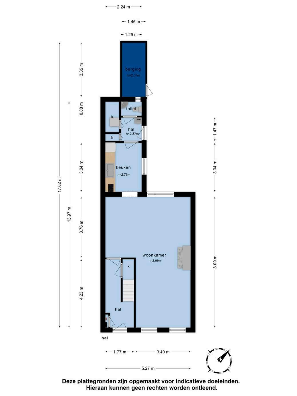 Begane grond: hal met trapopgang en berging. Ruime woonkamer met hoge plafonds en open