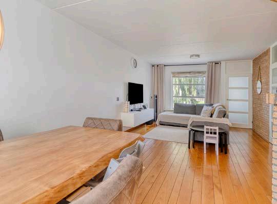 De royale woonkamer is een van de pronkstukken van deze woning. Grote ramen aan zowel de voor- als achterkant zorgen voor een zee aan natuurlijk licht, waardoor de ruimte nog groter en uitnodigender aanvoelt. De fraaie eikenhouten vloer voegt warmte en karakter toe aan het interieur, wat deze ruimte perfect maakt voor gezellige avonden met het gezin of ontspanning na een dag hard werken.