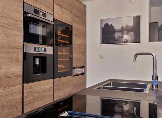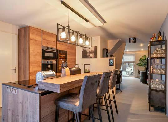 De ruime woonkeuken aan de voorzijde, geeft een open en verbonden gevoel. Of je nu een intiem diner voor twee bereidt of een feestelijke maaltijd voor vrienden en familie, de keuken biedt alle ruimte en voorzieningen die je nodig hebt. Je beschikt over een kook-/spoeleiland en diverse inbouwapparatuur, zoals een koelkast, vaatwasser, combimagnetron, koffieapparaat, wijnkoelkast, 4-pits inductiekookplaat en afzuigkap.