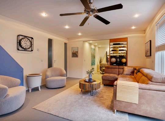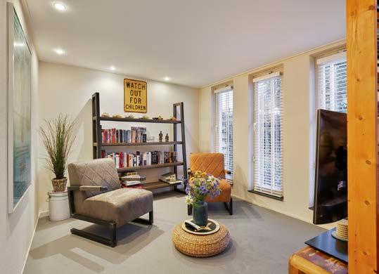 De woonkamer is een ware oase van licht en comfort. De grindvloer, voorzien van vloerverwarming, zorgt voor een moderne uitstraling en biedt het hele jaar door een aangename temperatuur onder je voeten. De zitkamer, direct grenzend aan de lichte woonkamer, is een veelzijdige ruimte. Richt deze knusse kamer in als een gezellige leeshoek met een comfortabele fauteuil, een staande lamp en een kleine boekenkast gevuld met je favoriete boeken en decoraties.