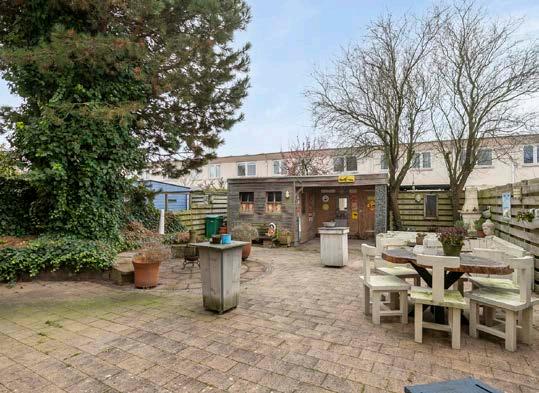 Via de schuifpui in de woonkamer stap je zo de zorgvuldig aangelegde tuin in. Met een ligging op het zonnige zuidwesten geniet je hier zowel in de middag als de avond. De tuin is slim ingedeeld met diverse zithoeken, waardoor je altijd een plekje kunt vinden dat past bij je stemming; of je nu wilt loungen met een boek, een kop koffie wilt drinken, of een gezellige avond met vrienden wilt doorbrengen.