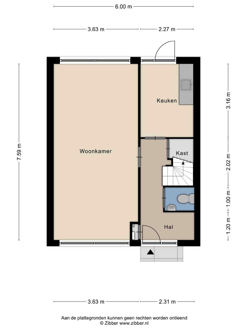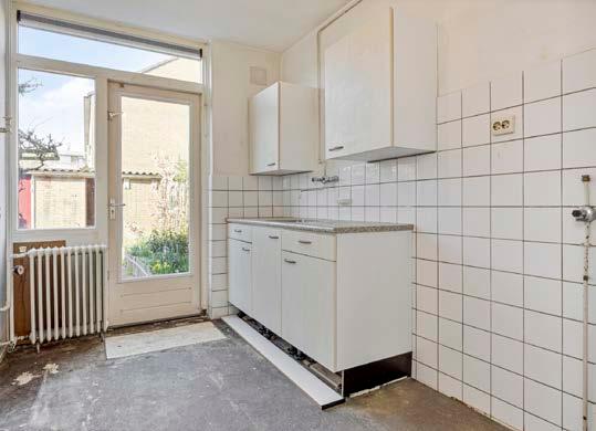 De dichte keuken tref je aan de achterzijde. Hier kun je echt jouw droomkeuken plaatsen in de kleur, opstelling en met de apparatuur die jij wenst. Ook kun je ervoor kiezen om de muur tussen de woonkamer en de keuken te verwijderen en zo een grote open ruimte te creëren waarin je wellicht een fraaie keuken (laat) plaatsen, compleet met kookeiland? Tevens is een deur naar de tuin.