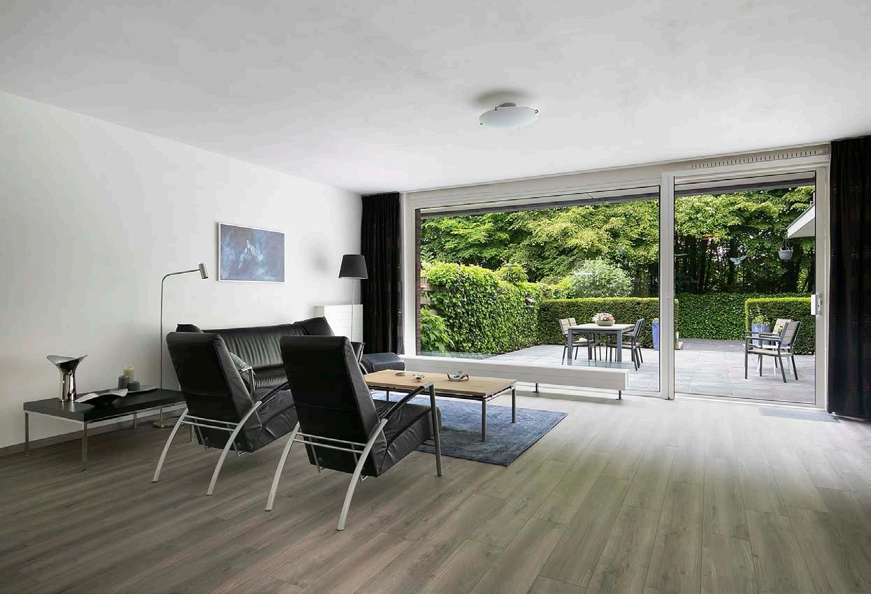 De woonkamer heeft aan de achterzijde een grote glaspui, waardoor er veel natuurlijk licht naar binnen valt. Daarnaast biedt de woonkamer voldoende ruimte voor een gezellige zithoek waar je comfortabel kunt genieten van een film op tv of een goed boek.