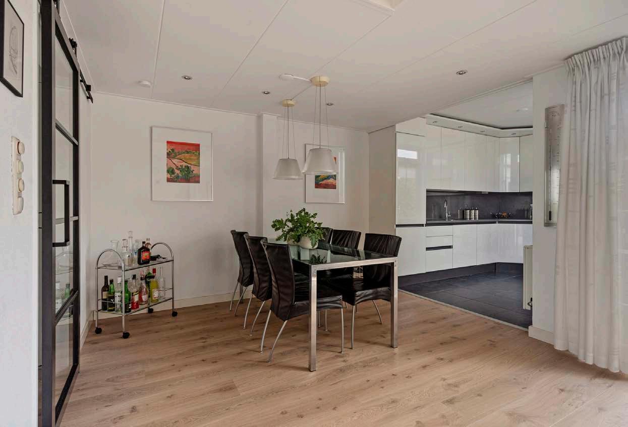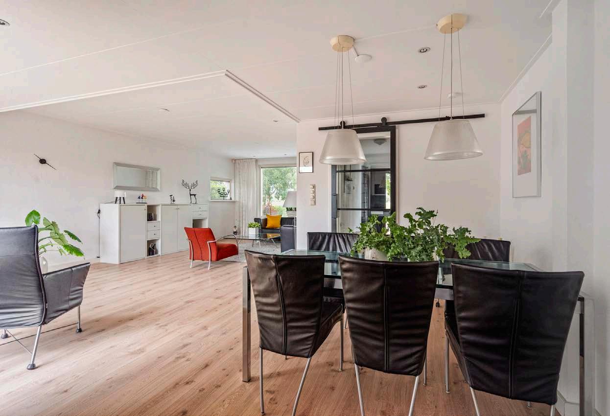 De woonkamer is ruim en licht, dankzij de grote ramen die de gehele dag rijkelijk het daglicht binnenlaten en een prachtig uitzicht bieden op de achtertuin. De open indeling maakt het eenvoudig om je woon- en eetgedeelte naar wens in te richten. Het knusse zithoekje bij de schuifpui is perfect voor een leesstoel of een speelhoek voor de kinderen.
