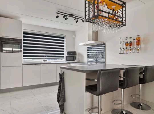 De keuken is een droom voor elke hobbykok. Uitgerust met een 5 pits inductiekookplaat, een Quooker, ruime koelkast, vriezer en vaatwasser, biedt deze keuken alles wat nodig is om heerlijke maaltijden te bereiden. De strakke lijnen en het hoogwaardige afwerkingsniveau maken het niet alleen een plezier om in te koken, maar ook een lust voor het oog.