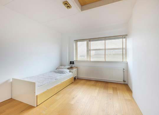 De slaapkamer op de begane grond is keurig netjes en licht afgewerkt en door het grote raam strijkt het daglicht heerlijk neer. Je hebt de mogelijkheid om deze kamer naar eigen wens in te delen.