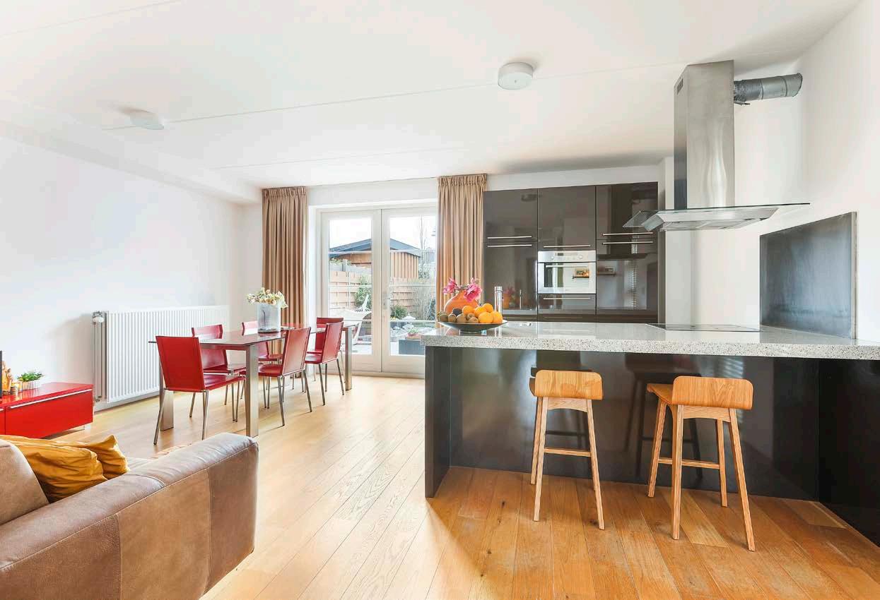 Kijken naar het groene bos doen wij vanuit de woonkamer en op het dakterras verandert het uitzicht van bos naar prachtige water van het Markermeer.