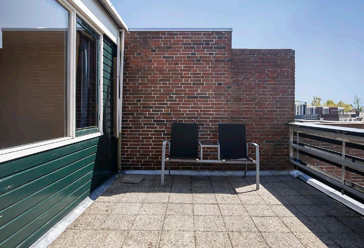 Het dakterras, dat vanaf de zolderverdieping bereikbaar is, ligt ook op het westen en biedt voldoende ruimte voor een heerlijk zitje. Hier kan je tot in de late uurtjes genieten van de ondergaande zon.