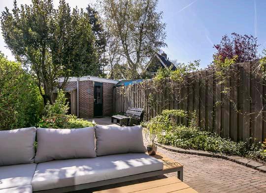 De achtertuin op het westen is netjes aangelegd met een mix van bestrating en groene beplanting. Er is voldoende ruimte voor een comfortabele loungeset. Dit biedt de uitstekende plek om tot rust te komen en te ontspannen.
