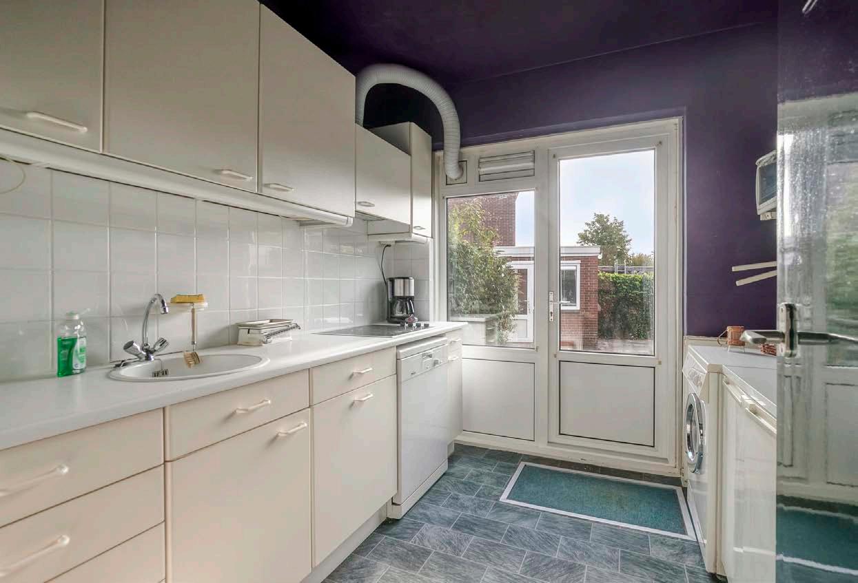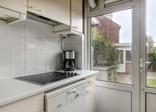 De keuken bevindt zich aan de achterzijde en is voorzien van o.a. een vaatwasser, keramische kookplaat, koel-vriescombinatie en wasmachineaansluiting. Ook vanuit de keuken is de achtertuin bereikbaar.
