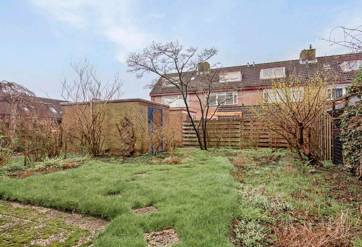 De west-gerichte achtertuin is een zonovergoten paradijs waar je tot in de late uurtjes kunt genieten van het buitenleven. Of je nu houdt van tuinieren, barbecuen met vrienden of simpelweg ontspannen met een boek, deze tuin biedt het perfecte decor. De vrijstaande stenen berging is ideaal voor het opbergen van tuinmeubilair en gereedschap, waardoor de tuin altijd een uitnodigende en opgeruimde uitstraling heeft. Hier vang je de laatste zonnestralen van de dag en sluit je de avond af met een glimlach.