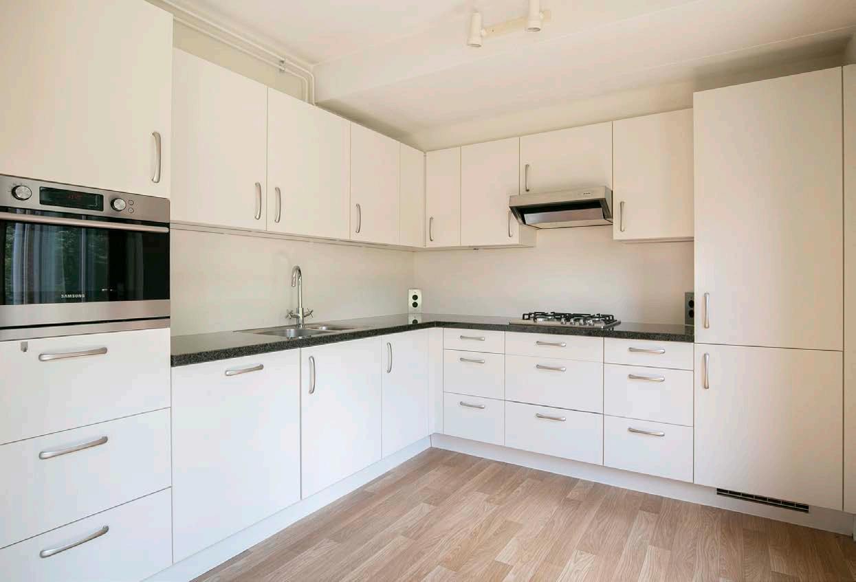 De keuken, geplaatst in 2016, is geplaatst in een royale hoekopstelling en voorzien van veel werk- en opbergruimte. Tevens geniet je van het gemak dat wordt geboden door de inbouwapparatuur, waaronder een 4-pits gasfornuis, een afzuigkap, een combi-oven, een vaatwasser en een ruime koel-/ vriescombinatie.