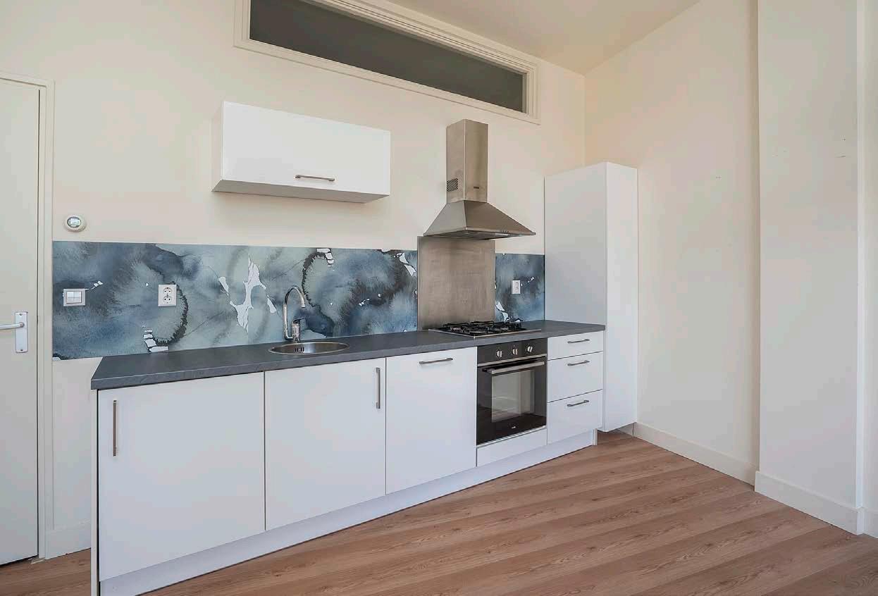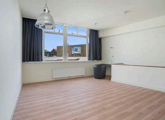Op de eerste verdieping bevindt zich een goed bemeten woonkamer met een prachtige lichtinval dankzij de grote ramen. Deze ruimte is eenvoudig afgewerkt met neutrale wanden en een laminaatvloer, maar biedt toch een fijne sfeer.