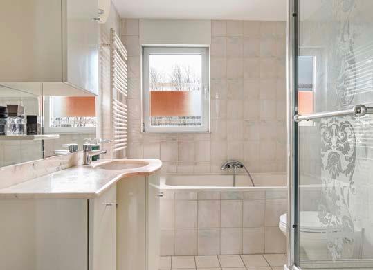De badkamer is volledig betegeld en heeft een verzorgde uitstraling. De indeling bestaat uit een ligbad, douche, wastafelmeubel, designradiator en een toilet.