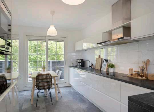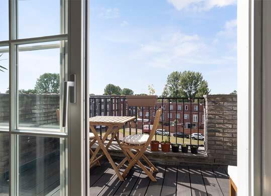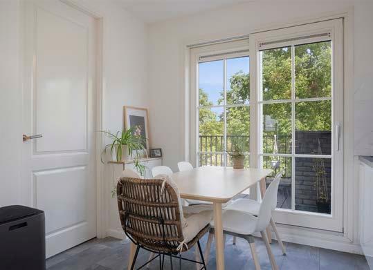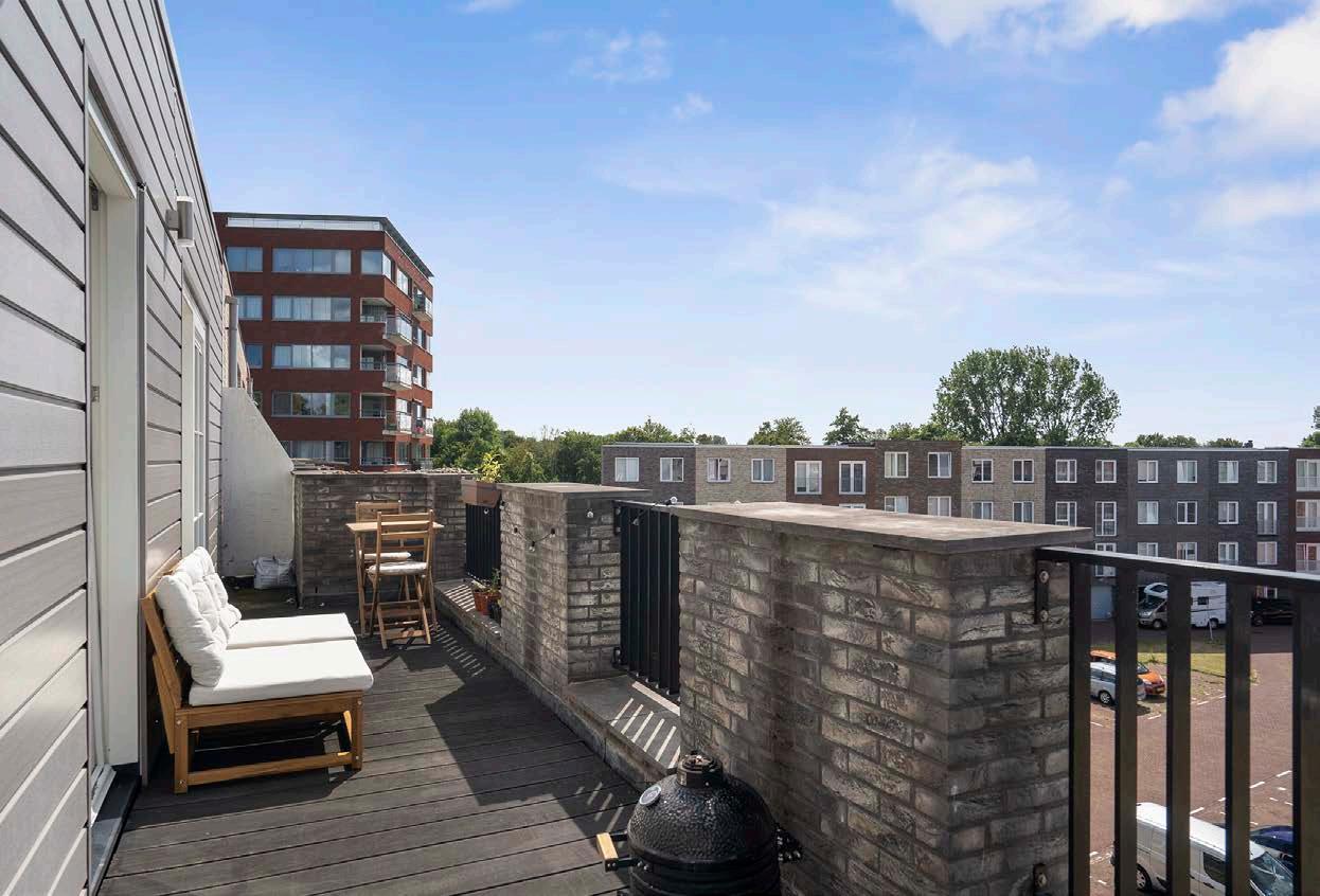 Tot slot biedt de schuifpui in de keuken toegang tot het woningbrede balkon aan de voorzijde.