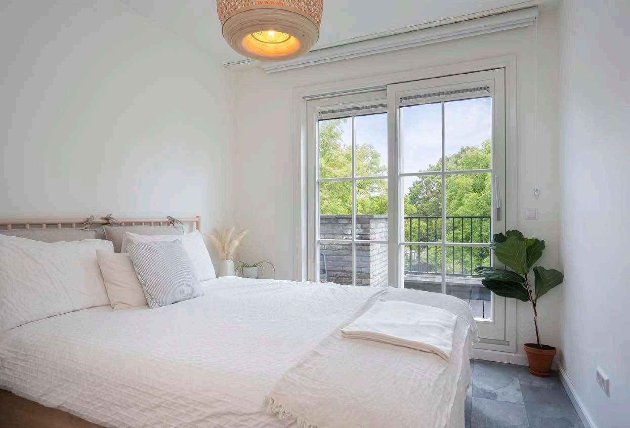 De twee slaapkamers zijn van goed formaat en eveneens verzorgd afgewerkt. Alle vertrekken zijn overigens voorzien van een deur naar het balkon aan de voor- of achterzijde. Dat is nog eens ontspannen de dag beginnen!