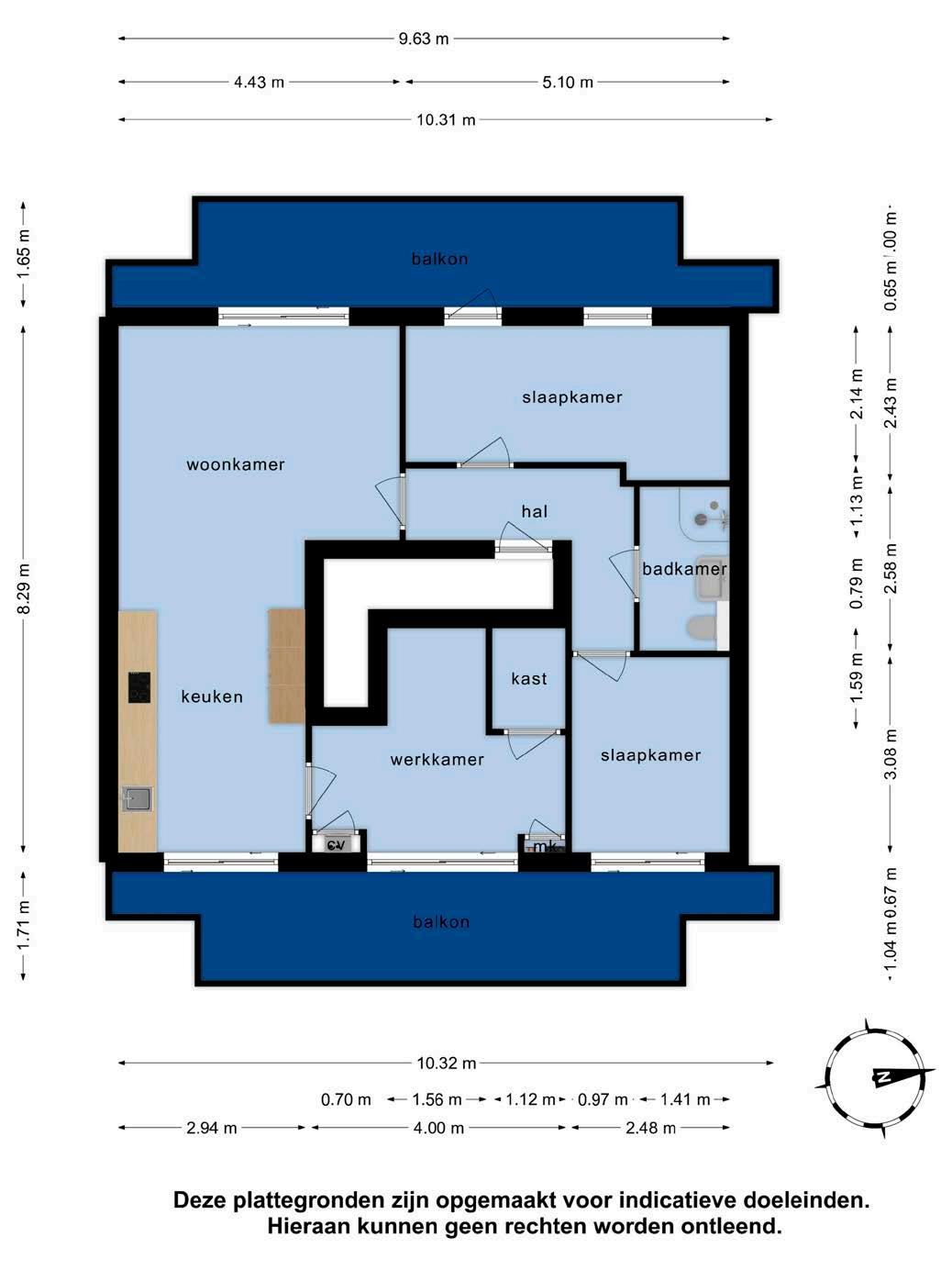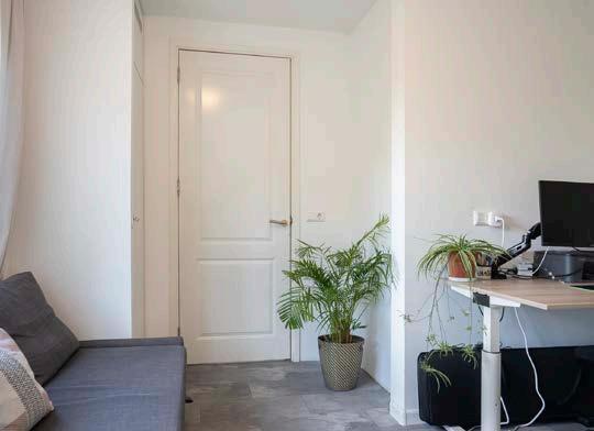 Het appartement telt in totaal drie kamers, waarvan twee slaapkamers en één werkkamer. De werkkamer is bereikbaar vanuit de keuken en is een ideale ruimte om bijvoorbeeld in alle rust thuis te kunnen werken. In deze kamer is ook een vaste kast met de witgoedaansluiting, de meterkast en de cvopstelling gesitueerd.